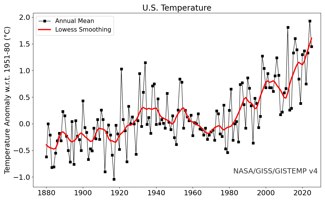 ‡ 2013-12-31 through 2016-05-17 data files were manually downloaded, because GISS had configured their web server to block access by archiving tools like webcitation. (They were also blocking archive.org, but as of June 2014 they've apparently ceased blocking it.) Wget also appeared to cease working, but that turned out to be because they now require the HTTP/1.1 protocol, which old versions of wget didn't support. After I upgraded my copy of Wget to version 1.16, it worked for about a year. Then, for most of April, 2016, GISS accidentally banned access to their web site from my IP address, and I had to access it via a proxy server; they unblocked it 4/27/2016. † † In the "Sources" column (D) means from John Daly & Jerry Brennan, (A) means from archive.org, and (M) means from Stephen McIntyre. In many cases, identical files were saved on multiple dates. The dates shown in this table are the dates of the oldest known copies. For the Daly/Brennan files, only the month was recorded, but in a few cases there is reason to believe it was from near the beginning or end of the month, and in such cases I used the first or last day of the month, respectively. The dirty tricks which NASA GISS pulled to prevent archiving of this data are discussed on Tony Heller's blog site, here (and in my comments here, here and here). It is shocking. I asked the "Climate Science Rapid Response Team" to help me locate the old data, and to explain the alterations which had added so much apparent "warming" to the U.S. surface temperature record. They were unable to do so, but they did direct me to some interesting material (some of which made me queasy); see also here. For more discussion of the sources of this data, see https://sealevel.info/GISS_FigD.html. ‡ ‡ The 2007-08-?? version is probably older than the 2007-08-13 version. The confusion is due in part to the fact that GISS had two versions on their server, "Fig.D.txt" and "new.Fig.D.txt," but archive.org never saved any copies of new.Fig.D.txt. | ||